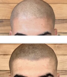 A konzultáció alkalmával meghatározzuk a terület nagyságát, felmérjük a fejbőr állapotát, és megtervezzük a beavatkozás menetét. Arra lehet számítani, hogy legalább 2-3 alkalommal találkozni fogunk a valóban elképzelt végeredmény megvalósítása miatt. A természetes hatás érdekében nagyon sűrűn kell pigmentálni a fejbőrt, vagyis egyre sűrűbben tetováljuk majd az apró kis pontokat. Egy nagyobb terület esetén ez jelentősen igénybe venné a fejbőrt, ezért ilyenkor mindenképp kihagyunk pár hetet a kezelések között. A pontos időpontokat személyesen mindenképp egyeztetjük. Az első alkalmat követően enyhe pirosság jelentkezhet a fejbőrön, de ez általában 1 nap alatt enyhül, vagy elmúlik. Előfordulhat, hogy a pigment színe se azonnal illeszkedik tökéletesen az elképzelésekhez, de a végleges szín kialakulásához hetekre van szükség, ezért mindig megnyugtatjuk vendégeinket.